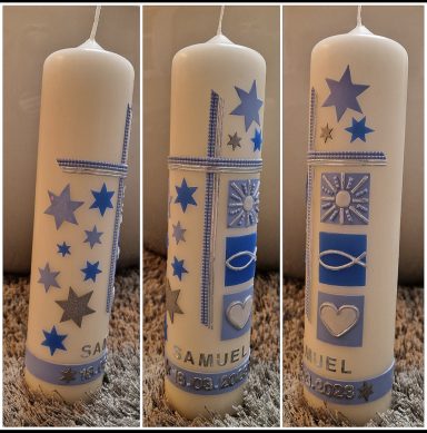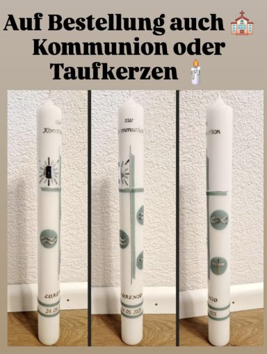 Ob Kommunionskerze, Taufkerze, Trauerkerze, Hochzeitskerze, Kerze mit Bildaufdruck, Fußballkerze, Vereine, uvm...